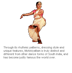 Through its rhythmic patterns, dressing style and unique features, Mohiniyattam is truly distinct and different from other dance forms of South India, and has become justly famous the world over.