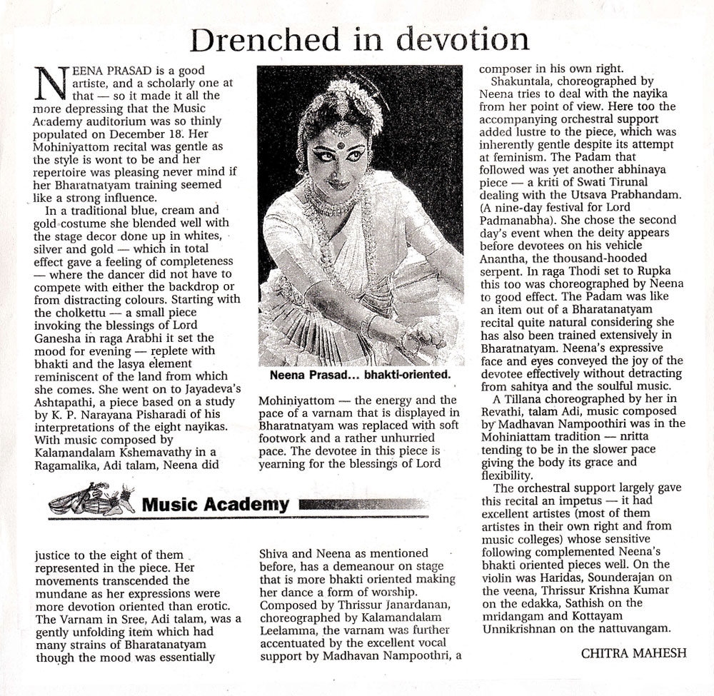 ‘Drenched in Devotion’ – The Hindu Review - Dec 2001, Madras Music Academy by Chitra Mahesh