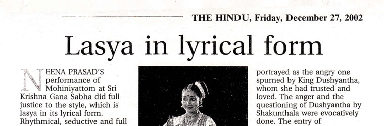 ‘Lasya in Lyrical form’ – Hindu Friday Review, Sree Krishna Gana Sabha - by V. R. Devika