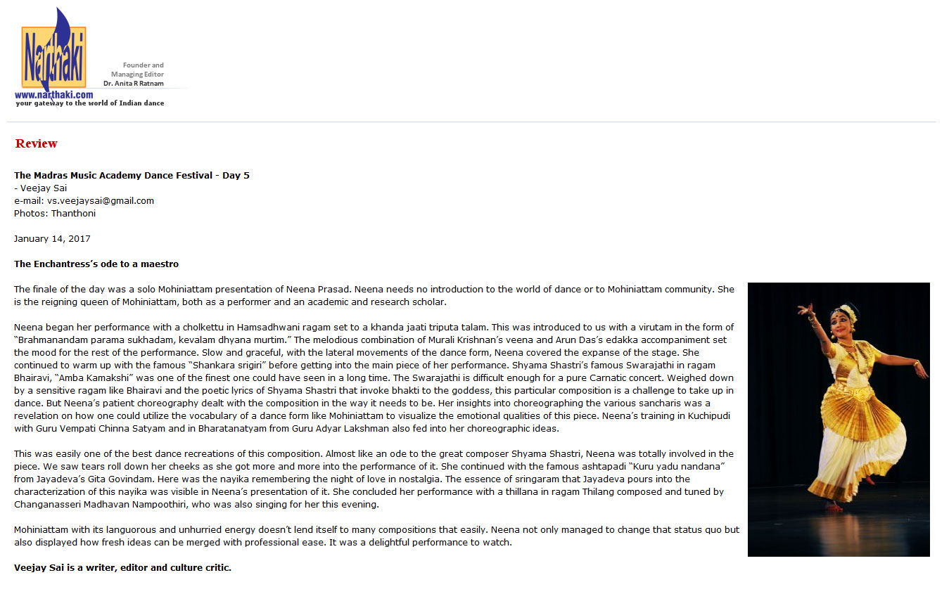 'The Enchantress's ode to a maestro' - Veejay Sai at Narthaki.com